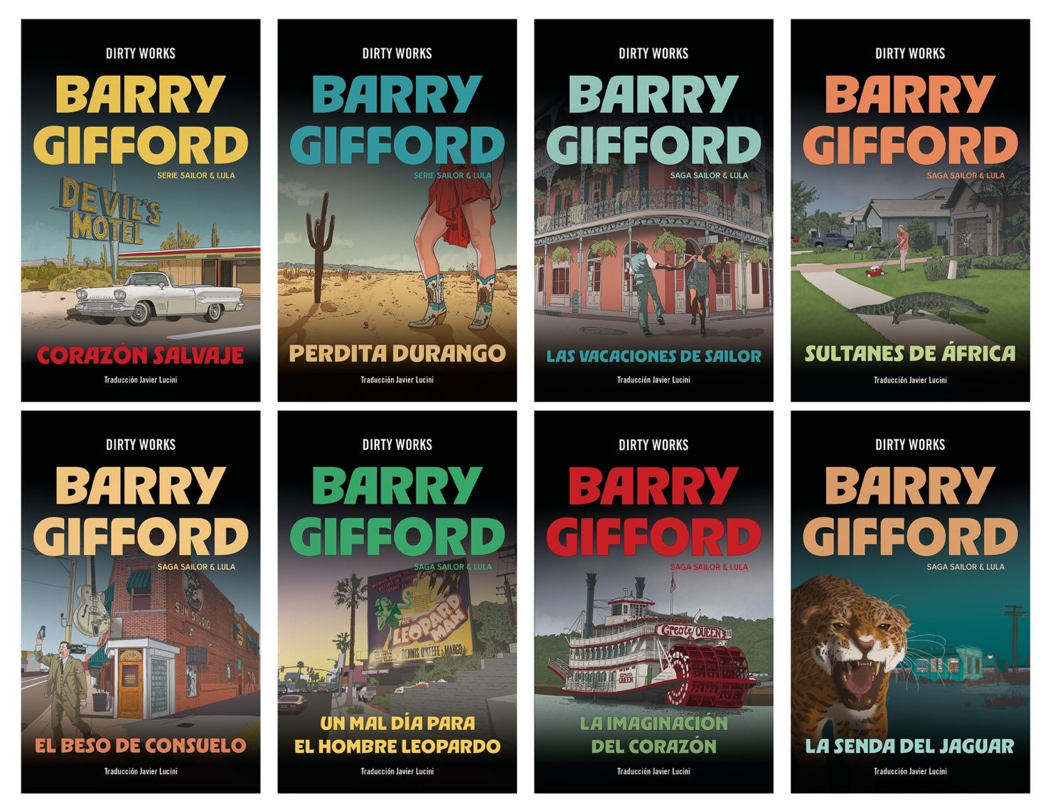 La editorial Dirty Works consiguió los derechos de toda la saga y la está publicando de manera paulatina aunque el trabajo del diseñador gráfico pozoalbense puede verse ya en su totalidad. El primer libro, Corazón salvaje, salió en septiembre; el segundo, Perdita Durango, en octubre; y el tercero, Las vacaciones de Sailor, lo ha hecho en el recién estrenado mes de noviembre. A lanzamiento por mes, los amantes de la saga la completarán en junio de 2026, pero las portadas ya están en la calle.