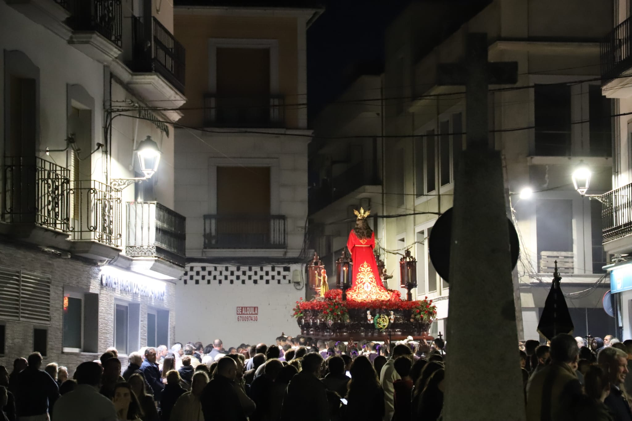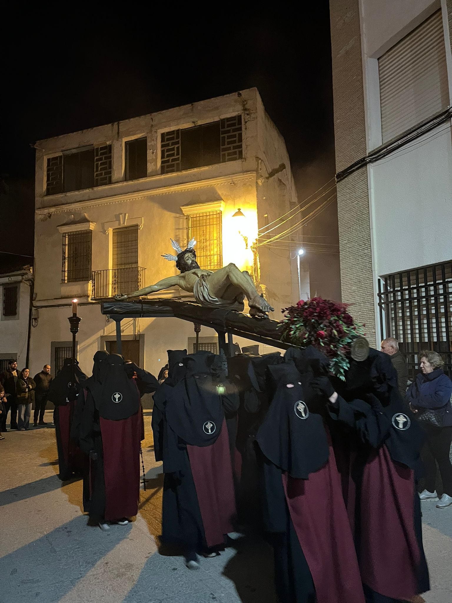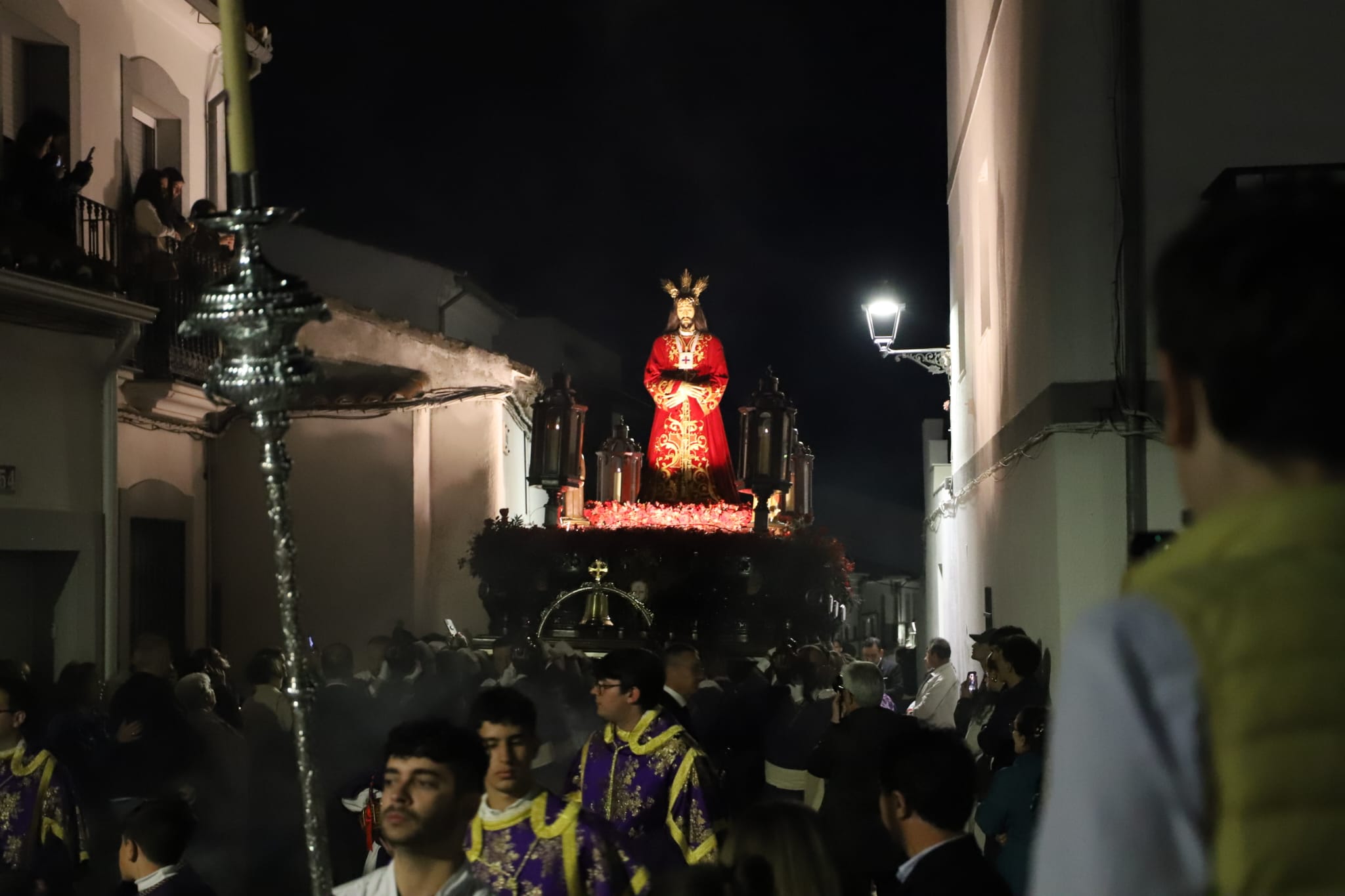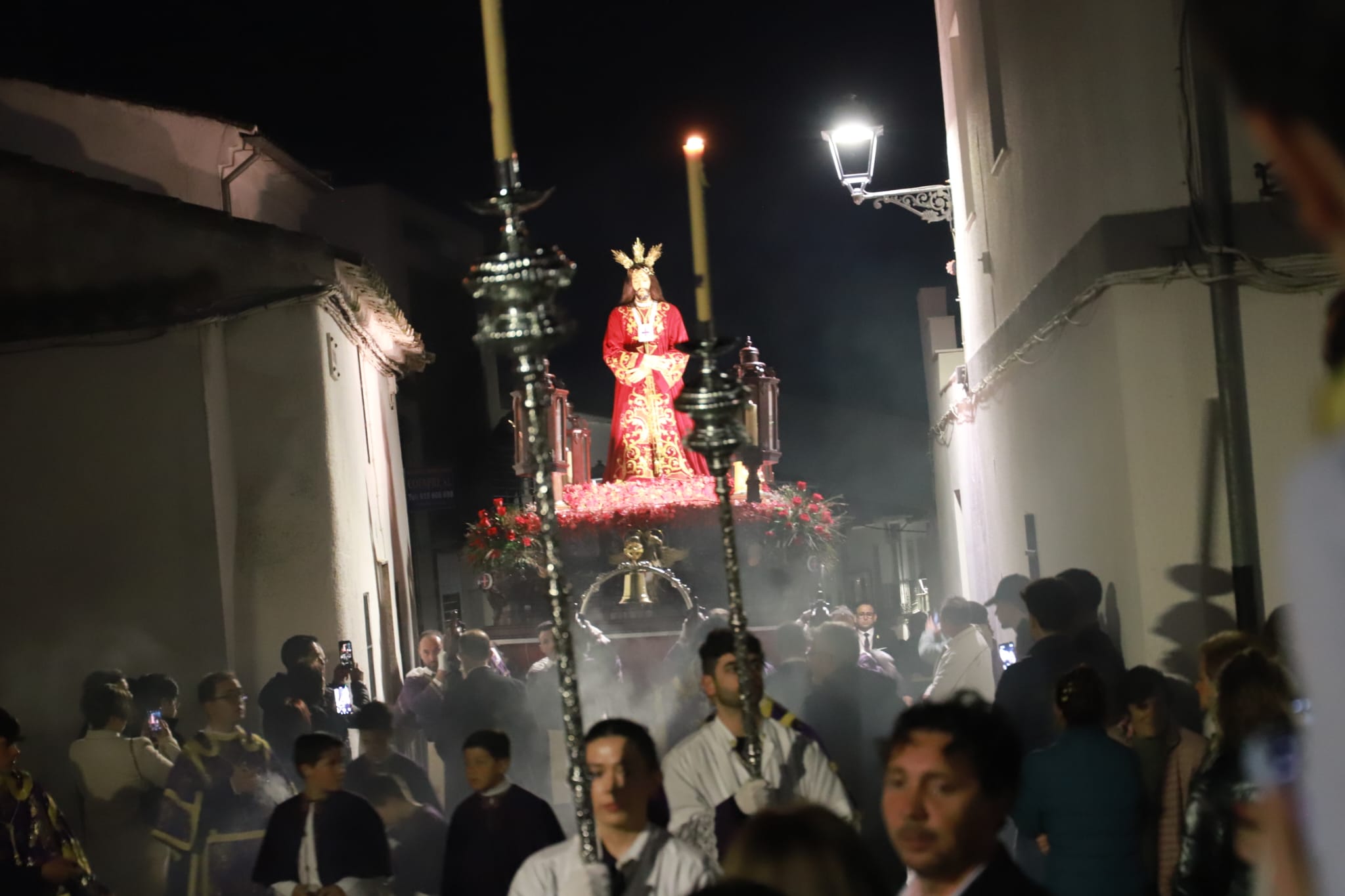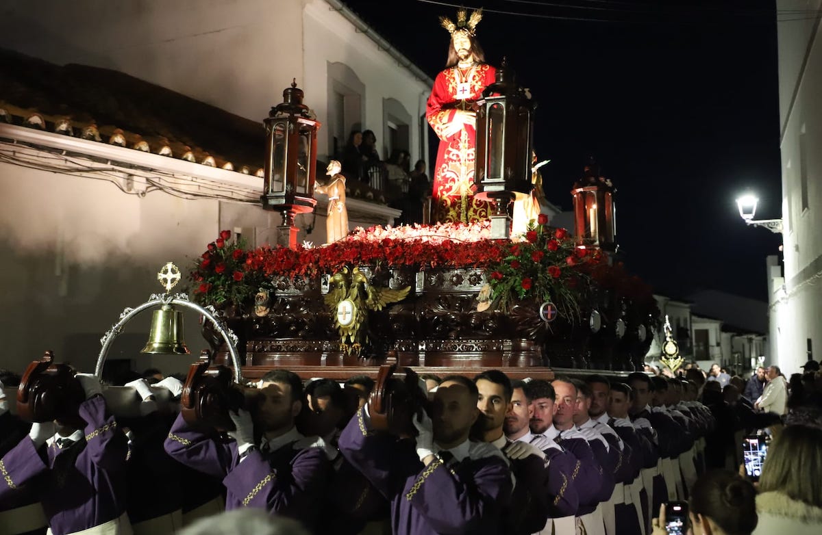 La procesión ha avanzado bajo el trote de los caballos para después dejar paso a un Cristo llevado por braceros, único paso que tiene esta característica en la Semana Santa pozoalbense, que ha lucido una túnica de un rojo intenso, al igual que los adornos florales, que aumentaba el poderío simbólico de una imagen que goza también de una importante devoción en la localidad. El acompañamiento musical lo ha puesto, de nuevo, la Banda de Cornetas y Tambores de la Cofradía Salesiana del Santísimo Cristo del Perdón, Nuestra Señora de la Amargura y San Juan Bosco de Pozoblanco.