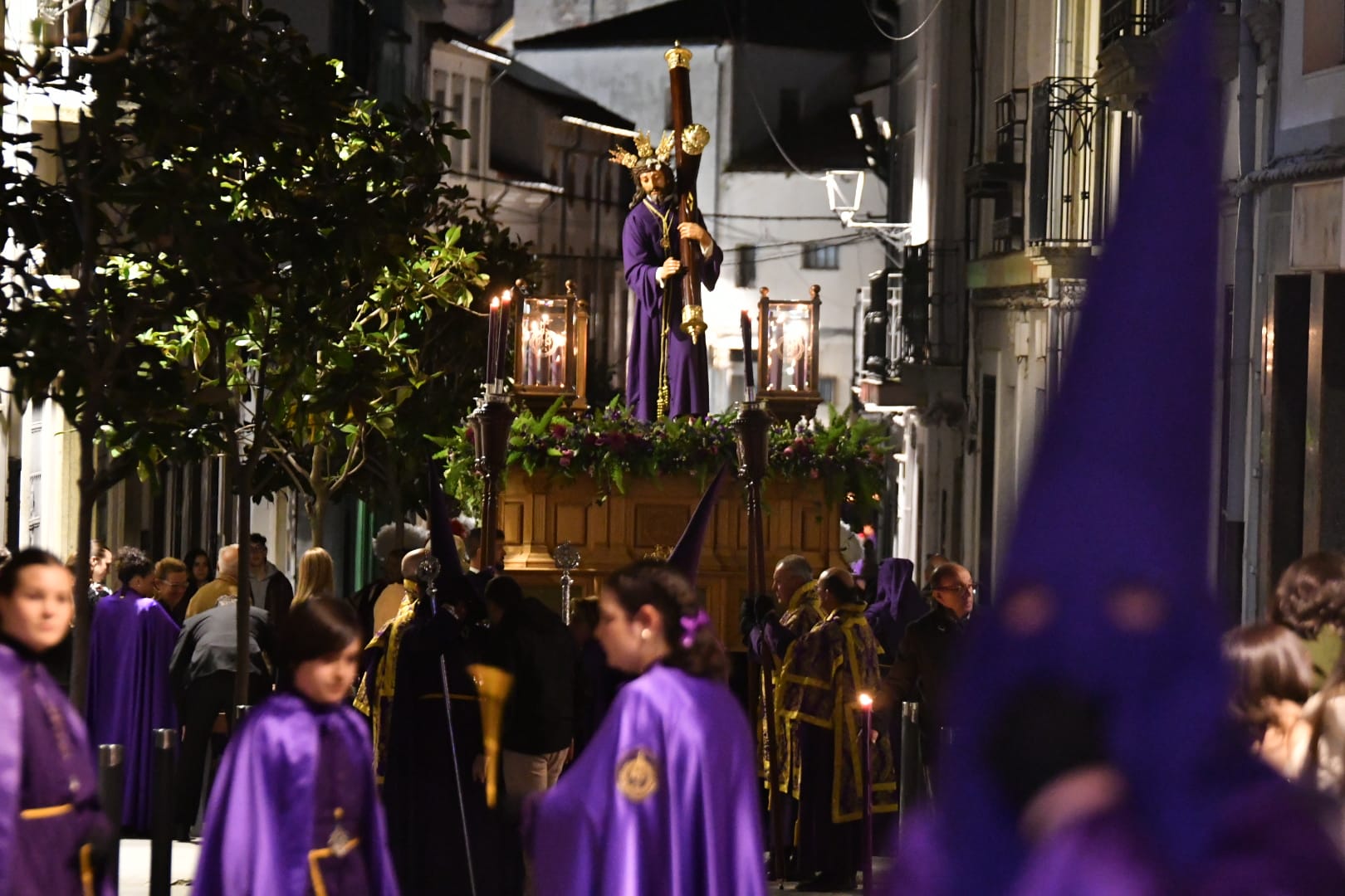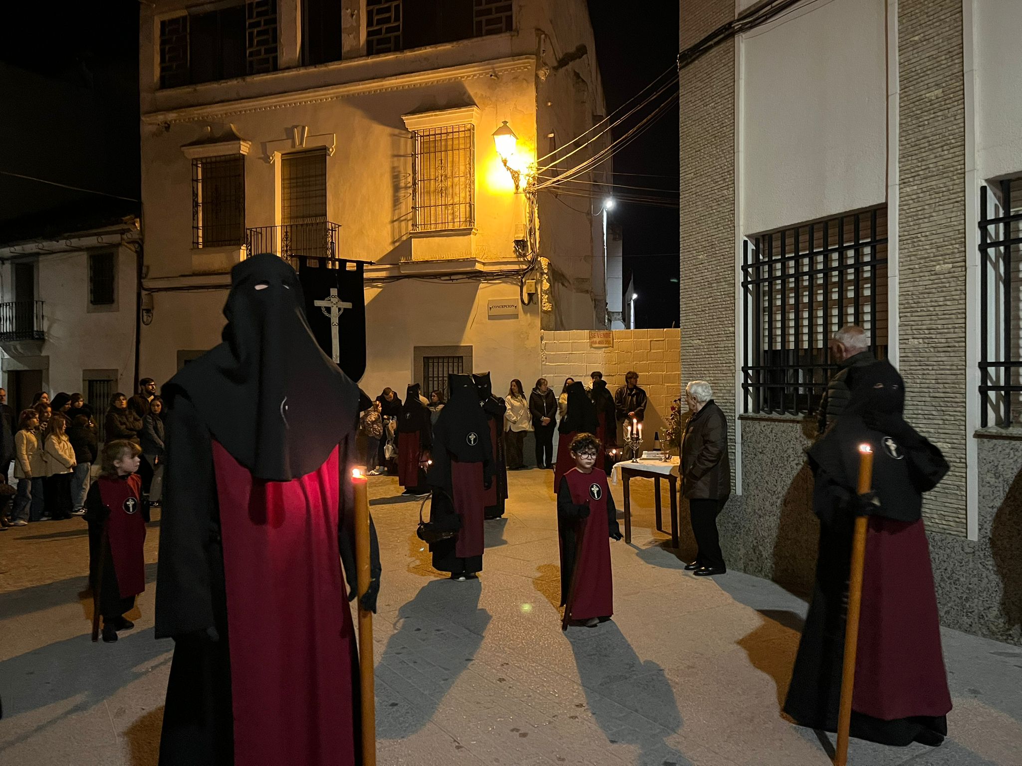 Y de San Bartolomé hasta la plaza de la Iglesia donde ha continuado un Miércoles Santo que tiene su espacio de recogimiento y oración con la Cofradía del Santísimo Cristo de la Caridad en su Vía Crucis. Estación tras estación se ha vivido un vía crucis donde el sonido es otra de las características inconfundibles de este día: los tambores roncos. El recorrido en la noche del Miércoles se hace entre oración, entre caídas, recordando un calvario que da significado a la Semana de Pasión en su conjunto, que recuerda en la calle el origen de cofradías y hermandades.